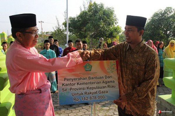 TANJUNGPINANG (terkininews.com) - Kepala Kantor Wilayah Kementerian Agama Provinsi Kepulauan Riau Drs. H. Marwin Jamal, Jumat kemarin (26/9) menyerahkan bantuan kemanusiaan untuk rakyat Palestina.