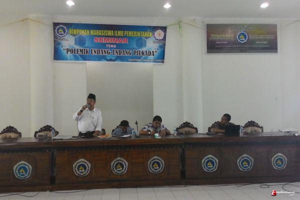 Seminar ini berlangsung sebagai tindak lanjut mengenai polemik undang-undang pilkada yang dipilih langsung oleh DPRD. Berlaku sebagai narasumber adalah Bapak Hendrisal S.Sos,M.Si dan Dr. Oksep Adhayanto S.H,M.H keduanya adalah Dosen Umrah. Narasumber undangan Bapak H. Huzrin Hood, dan dipandu moderator seminar Bapak Irman, S.H., M.H.