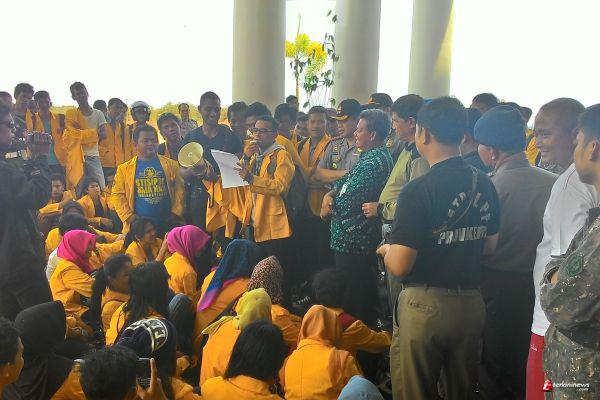 Para mahasiswa sempat menggelar mimbar bebas di depan Lobi Kantor Gubernur. Beberapa pokok persoalan yang menjadi tuntutan mahasiswa antara lain, Anggaran naik tapi malah porsi beasiswa yang dikurangi.