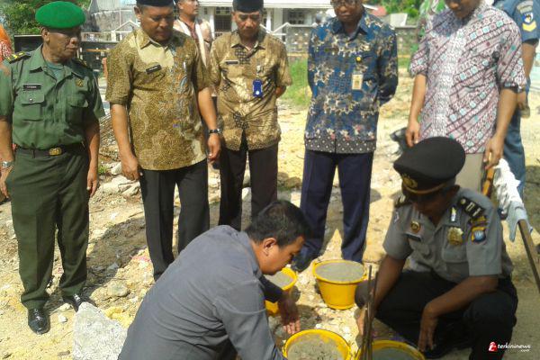 KARIMUN - Camat Kundur Sukari melakukan peletakan batu pertama pembangunan Musholla Madrasah Ibtidaiyah Negeri (MIN) Tanjungbatu Sei. Ungar Kecamatan Kundur, Kamis, (30/10/2014) pagi.
