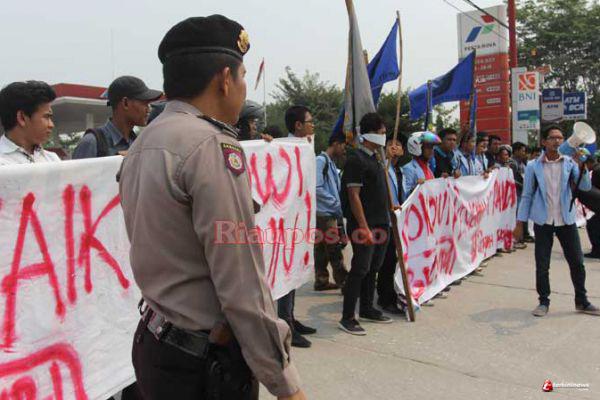 PEKANBARU - Rencana pemerintahan Jokowi untuk menaikkan harga BBM bersubsidi kembali mendapat penolakan. kali ini aksi unjuk rasa penolakan itu dilakukan puluhan mahasiswa Universitas Riau (Unri), Senin (3/11/2014).