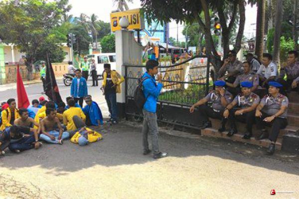 Sejumlah provokator berusaha diamankan, namun mereka berhamburan. Mahasiswa ini kocar-kacir hingga mundur di depan pintu gerbang masuk kantor polres. Akhirnya polisi berhasil memukul mundur mahasiswa pendemo. Situasi itu tidak berlangsung lama atau hanya sekitar 15 menit. Imad selaku korlap mengatakan, mahasiswa yang terkena pukulan ada beberapa orang.