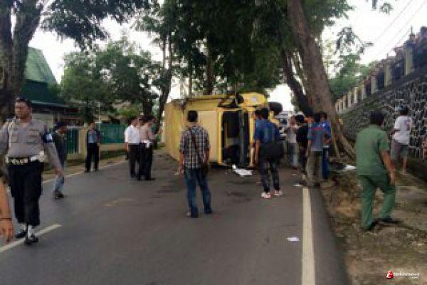TANJUNGPINANG - kecelakaan lalu lintas lori pengangkut BP 9231 TU. Kecelakaan ini, terjadi tepat di depan kantor Kapolres KM 5, Senin (12/8/2014) pukul 13.00 WIB siang.