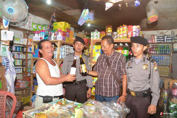 "Pengawasan terhadap distribusi minuman beralkohol itu dilakukan secara intensif. Dalam razia tersebut pihaknya berhasil mengamankan 4 botol minuman keras jenis gingseng dan arak putih dengan kadar 19 persen serta 4 kantong tuak dan satu jerigen," kata Kompol Jamal saat memimpin razia tersebut.