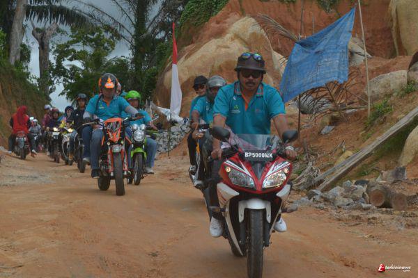 KARIMUN - Ada yang menarik saat Bupati Karimun Nurdin Basirun berkunjung ke Kundur saat akan meresmikan pencanangan kawasan wisata pantai di Gading Sari Kecamatan Kundur pada Minggu (21/12). Saat bertolak dari Tanjungbalai Karimun melalui Tanjung Berlian, Bupati Karimun tidak langsung menuju lokasi kegiatan di Kelurahan Gading Sari melainkan berkumpul di Balai Pemuda seni dan Budaya Tanjungbatu Kota bersama sejumlah klub motor Kundur untuk berkonvoi bersama menuju lokasi acara.