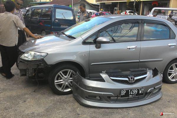 TANJUNGPINANG - Mobil Honda silver bernomor polisi BP 1499 WY menabrak tiang di tengah jalan bt 7 pada pukul 11.00 siang. Akibatnya, bagian depan mobil berwarna silver itu ringsek.
