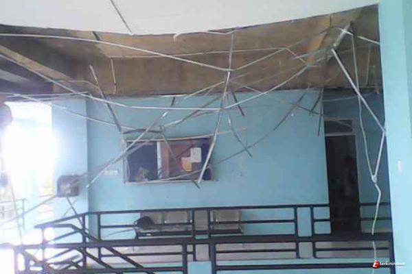 Beberapa detik setelah itu, tiba-tiba datang angin yang suaranya lebih keras yang rasanya muncul dari arah barat. ‘’Memang sih gerimisnya itu tak begitu lebat, tapi pas setelah datangnya angin, saya bingung dan kaget melihat angin yang merusak plafon atap Kampus,’’ jelasnya