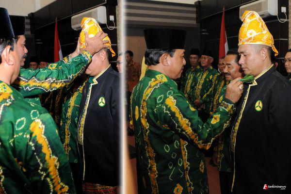 Bupati Karimun dalam sambutannya, terlebih dahulu memasangkan tanjak ke kepala Ketua KKB terpilih mengucapkan selamat atas dilantiknya kepenggurusan KKB Kabupaten Karimun periode yang baru.