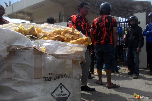 Mereka mendesak PT Panasonic bertanggungjawab atas atas limbah glasswool yang dibuang dekat pemukiman warga.