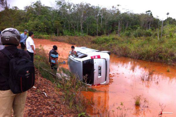 Sopir Ngantuk, Mobil Terbalik Ke Sungai