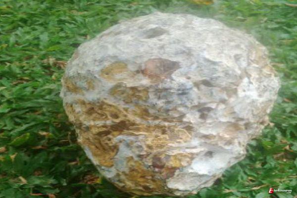 Batu dengan bobot kurang lebih 13,5 kilogram berbentuk bulat seperti tengkorak didapat Asmar Daud dari Antar saat berkunjung ke Desa Sum, tempat pertama batu-batu Obi ditemukan di pulau tersebut.