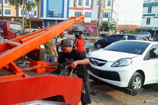 TANJUNGPINANG - Sebuah mobil menghantam lampu penerang jalan pada sabtu pagi (14/02) di Jalan DI Panjaitan KM 9 Tanjungpinang, Kepulauan Riau. Kecelakaan tuggal ini pun membuat mobil terbalik dan 1 buah lampu penerangan bagian tengah jalan roboh . Diduga pengemudi mengantuk saat mengedarakan mobilnya.
