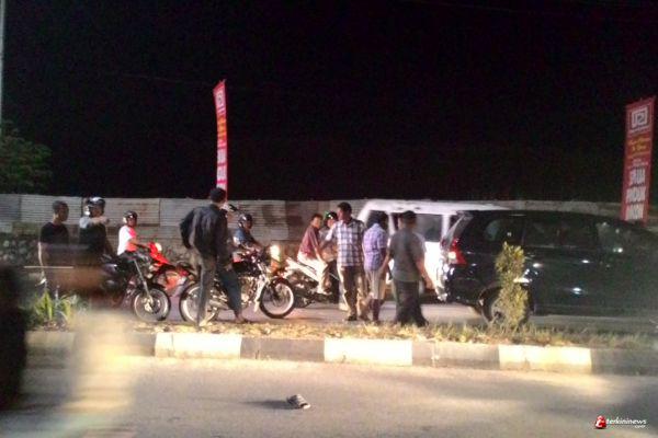 "saya juga ada di seberang jalan ya lihat pengendara RX king itu disenggol mobil dalam suasana macet. Tapi akhirnya kedua belah pihak berdamai karena memang tidak parah. Hanya lecet sikit di tangan pengendara motornya juga tidak apa-apa. Yang mobil juga demikian.’" ujar saksi mata di lokasi kejadian yang enggan namanya disebutkan.