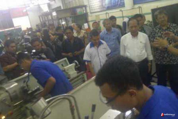 M Nasir berkeliling dan melihat mesin-mesin karya anak bangsa, yang diharapkan mampu menjadi pendukung industri di Indonesia.