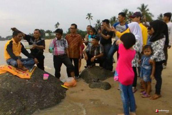 Warga Kampar dari penjuru pulau Kundur mandi bersama di tepi pantai yang menjadi salah satu pantai kebangga di pulau Kundur itu menggunakan berbagai ramuan tradisional.