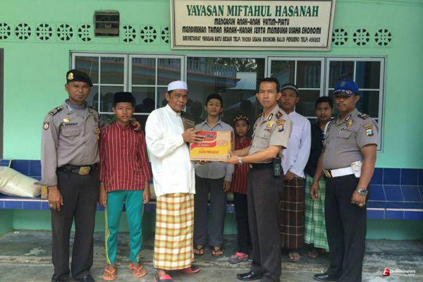 BATAM - Polsek Nongsa Memberikan santunan untuk anak yatim pada Rabu (24/6/2015). Pemberian santunan dilakukan dibeberapa panti asuhan yang berada di wilayah Kecamatan Nongsa, Kota Batam.