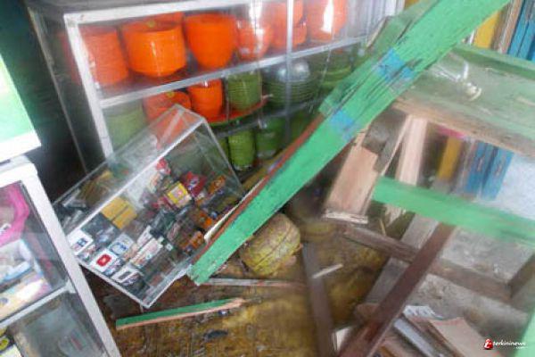 Tak pelak, sepedamotor tersebut langsung menghantam bagian depan rumah milik Benny, sehingga mengakibatkan tiga buah lemari kaca pecah yang terletak di bagian depan rumah tersebut, termasuk tempat jualan minyak di depan rumah juga rusak parah.