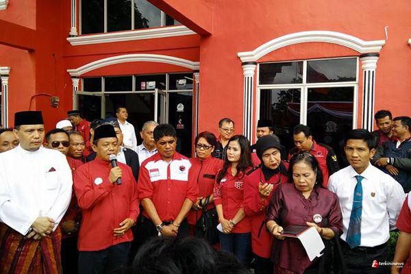 Ditemani beberapa pengurus Partai PDIP dan PAN dan Golkar, Pasangan Ria-Lis masuk dan menyerahkan berkas dan kelengkapan, “Alhamdulillah berkas kita lengkap dan kami menunggu verifikasi dari KPU,” kata safari.
