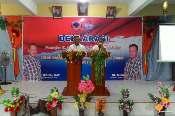 Pendeklarasian pasangan Allias Wello-M Nizar tersebut digelar di hadapan ratusan massa pendukungnya yang memadati ruang pertemuan Hotel Lingga Pesona Lama. Pasangan yang diusung oleh Partai Nasional Demokrat (NasDem) ini mendeklarasikan diri dengan motto "Lingga Terbilang" 2020 mendatang.