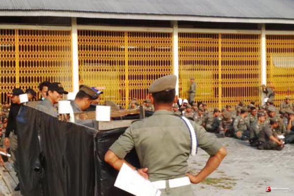 RIAU - Ratusan anggota Satpol PP Riau pagi ini lakukan test urine. Sejumlah anggota Badan Narkotika Nasional (BNN) Provinsi Riau pun dilibatkan. Kegiatan test urine yang dilaksanakan di halaman kantor Satpol Riau ini dipimpin oleh Kabid Ketentraman dan Ketertiban Masyarakat Satpol PP Riau Maradona.