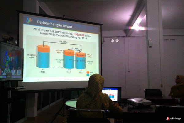 Dalam kesempatan itu juga beliau menyebutkan ekspor migas juli 2015 mencapai US$241,80 juta atau turun 4,80 persen dibanding juni 2015. Ekspor non migas juli 2015 mencapai US$663, 46 juta atau turun 28,53 persen dibanding juni 2015. Ekspor non migas HS 2 dijit terbesar Juli 2015 adalah golongan barang mesin/peralatan listrik sebesar US$ 196, 12 juta berperan terhadap ekspor non migas sebesar 29,56 persen.