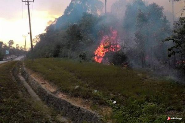 BATAM - Kebakaran hutan kembali terjadi, kali ini hutan yang berhadapan langsung dengan jalan raya simpang Taiwan kelurahan kabil, Batam (3/9.2015). berdasarkan keterangan para saksi, kebakaran sudah terjadi sejak pukul 14.00 WIB namun hingga menjelang pukul 18,00 belum ada satupun petugas yang turun kelapangan untuk memadamkan api.