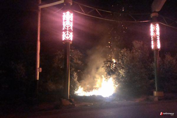 Menurut Roni yang melintas di jalan tersebut api sedikit lagi menyambar kabel listrik.