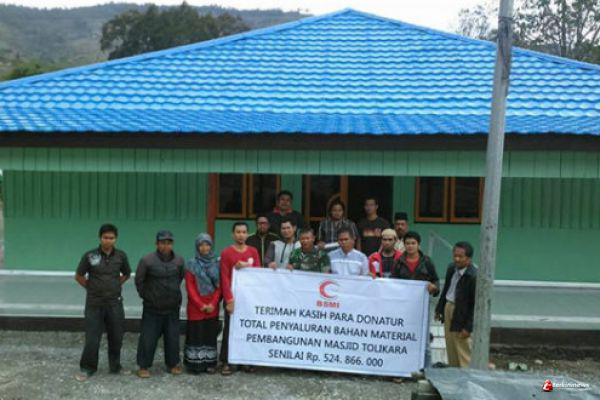 Dana pembangunan masjid Tolikara 100% berasal dari donasi kaum Muslimin yang terkumpul mencapai Rp. 524.866.000. Sedangkan sisa dana donasi akan di salurkan oleh BSMI untuk pembangunan masjid di 11 Desa Muslim di Jayawijaya.