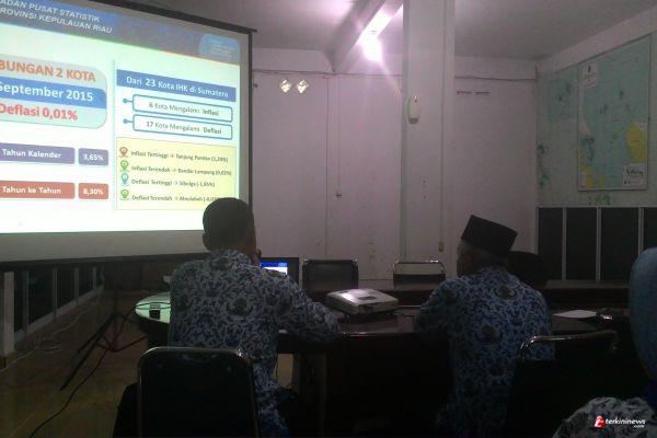 ‘’Inflasi tahun kalender januari- September 2015 di Kota Tanjungpinang sebesar 2,44 persen dan laju inflasi tahun ke tahun di Kota Tanjungpinang September 2015 dibandingkan dengan September 2014 sebesar 6,81 persen.’’ungkap Ketua BPS Kepri Dumangar, Kamis (10/01/2015).