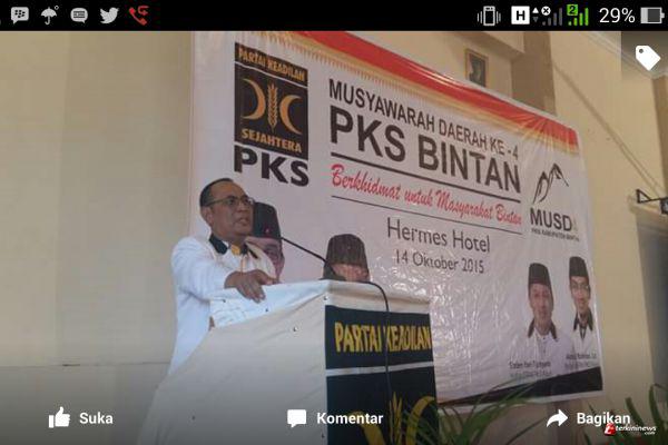 BINTAN - Hasil Musda ke-4 DPD PKS Bintan, Kepulauan Riau di Hotel Hermes Ahad (14/10) telah memilih Raja Miskal sebagai Ketua DPD PKS Bintan menggantikan Selamat, S.Pt periode 2015 - 2020. Restrukturisasi kepengurusan ini merupakan agenda PKS se Indonesia.