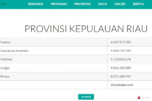 Dengan rincian Kabupaten Natuna 367.317.355, Kab. Kepulauan Anambas Rp 4.408.142.784, Kab. Karimun 5.142.833.248, Kab. Lingga Rp 9.061.182.389, Kab. Bintan Rp 8.571.388.747. Data ini berdasarkan rilis yang dimuat oleh website www.potretdesa.com.