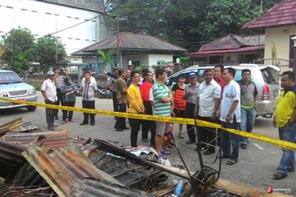 KARIMUN - Pasca kebakaran yang meluluhlantakan 6 Ruko di jalan Sudirman depan Mapolsek Kundur Utara Barat pada Jumat (27/11) malam kamarin Bupati Karimun H. Aunur Rafiq meninjau langsung lokasi kebakaran tersebut.