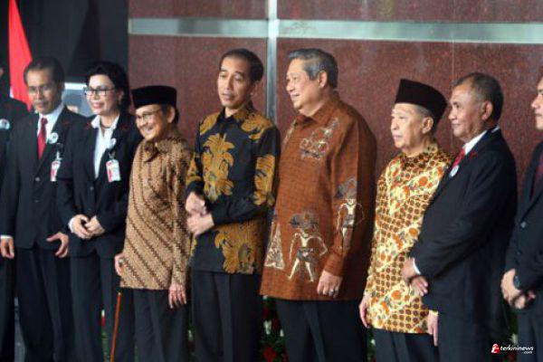 Hamzah Haz mengenakan batik cokelat dan berpeci hitam. Mantan Ketua Umum PPP ini ikut foto bersama Presiden Joko Widodo. Sedangkan Presiden RI ke-6 Susilo Bambang Yudhoyono datang bersama Presiden RI ke-3 B.J. Habibie, juga ikut foto bersama.