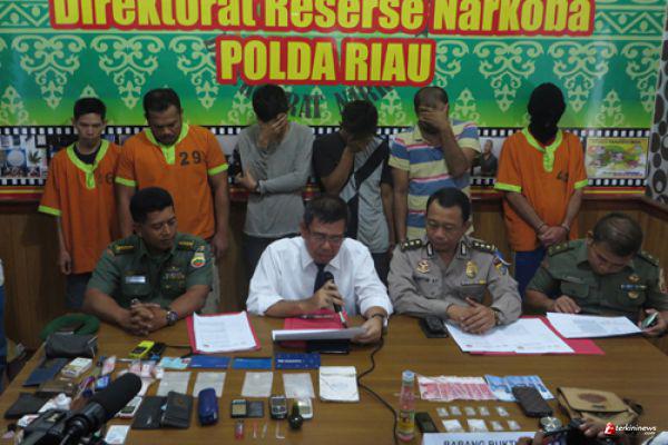Dalam ekspose, Rabu sore (30/12/15) Direktur Ditres Narkoba Polda Riau, Kombes Hermansyah didamping Kasrem 031/WB Kolonel (Czn) I Nyoman Parwata menyebutkan, keenam tersangka ditangkap di dua tempat dan waktu yang berbeda.
