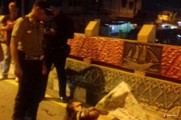PEKANBARU (RIAU) - Ketika sedang melakukan patroli keamanan jelang malam Tahun Baru 2016, anggota Polresta Pekanbaru justru dikejutkan dengan penemuan mayat seorang laki-laki tewas bersimbah darah, Rabu (30/12/15) pukul 04.30 pagi. Jasad tersebut diketahui bernama Rizky Ofta Yosa (23), mahasiswa asal Provinsi Sumbar. Petugas menemukan jasad korban di tengah jalan jembatan Flyover Jalan Sudirman Pekanbaru.