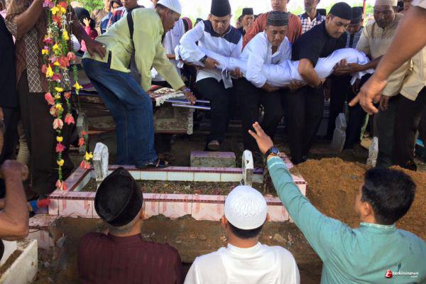 Dari pantauan awak media, jenazah diberangkatkan dari lokasi sebelum adzan zhuhur berkumandang. Jenazahnya dibawa ke tempat pemakaman. Setelah dishalati, ia diberangkatkan ke tempat peristirahatan terakhir. Jenazah diusung bergantian oleh petugas dan warga sipil. Di depan iringan jenazah, berbaris masyarakat dan pihak kepolisian.