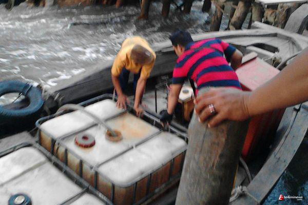 Pantauan dilapangan, sebuah kapal kayu berukuran 6 GT mengangkut puluhan drum berisi solar subsidi tersebut. Dari informasi yang dihimpun, kapal kayu tersebut telah 5 kali mengantar pasokan solar untuk kebutuhan perusahaan tambang pasir. Sekali angkut, kapal kayu mampu membawa 4 Ton solar dan diinapkan disebuah gudang tak jauh dari lokasi pelabuhan tempat bongkar muat.