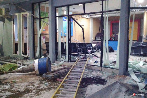 Lemparan batu oleh warga tersebut membuat pot bunga dan kaca-kaca di kantor tersebut pecah berserakan. Sebelum pada malam rabu (06/01) juga didatangi sejumlah orang juga kesal dengan pemadaman oleh PLN, namun tidak sampai terjadi kerusuhan.