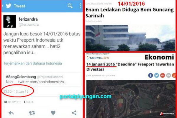 Namun, seorang netizen @ferizandra menulis di jejaring twitter tadi malam bahwa akan ada pengalihan isu terkait batas waktu Freeport Indonesia menawarkan saham, yang deadline nya hari ini, Kamis, 14 Januari 2016.