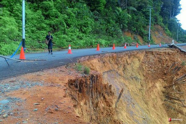 Berdasarkan pantauan wartawan elektronik ini di lapangan, kondisi longsor memang belum memakan separuh jalan. Dari perkiraan, kurang lebih jalan yang terkena longsor sepanjang belasan meter.