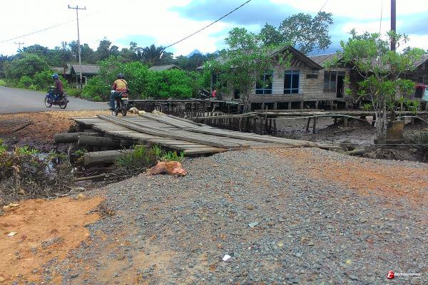 Selain itu, jembatan kayu ini juga tidak ada pembatasnya. Hal ini dikatakannya cukup beresiko bagi pengguna jalan yang melintas.