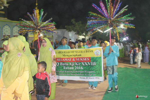 BATAM - Pembukaan MTQ Kecamatan Batu aji yang digelar pada malam ini (5/3/2016) di halaman masjid Al-Kautsar kelurahan buliang kecamatan Batu Aji berlangsung hikmat dan meriah. acara yang diawali dengan arak-arakan kontingen dari 4 kelurahan yang ada di kecamatan Batu aji yaitu Kelurahan Bukit Tempayan, Kelurahan Buliang,Kelurahan Kibing,Kelurahan Tanjung Uncang,