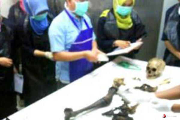 Saat ditemukan kondisi korban sudah tinggal kerangka dan hanya pada bagian kaki yang masih terdapat jaringan dagingnya.