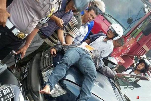 Kecelakaan Beruntun, Ibu Terlempar ke Atas Mobil