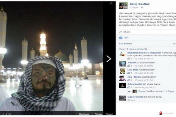 “Sebanyak 9 penyalur jemaah Haji menolaknya karena berbagai alasan tentang pandangan Agama terhadap tato. Sampai akhirnya agen ke-10 yang ia datangi setuju dan akhirnya Bob Sick bisa menjalankan Ibadah Umroh di Tanah Suci Mekkah,” tulisan dalam akun Bag GasRuk.