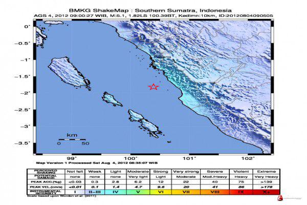 Hingga saat ini belum diketahui kerusakan akibat gempa yang berlokasi di 2,29 Lintang Selatan, 100.46 Bujur Timur dengan kedalaman 72 kilometer. (antara)