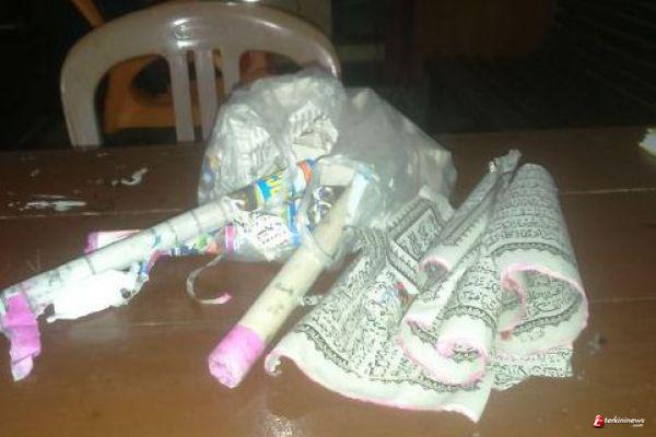 PANGKALPINANG - Jajaran Polsek Pangkalan Baru dan Polres Pangkalpinang menemukan kembang api berbahan Alquran. Penemuan ini bermula dari laporan warga yang melihat adanya ceceran Alquran bekas kembang api yang berserakan.