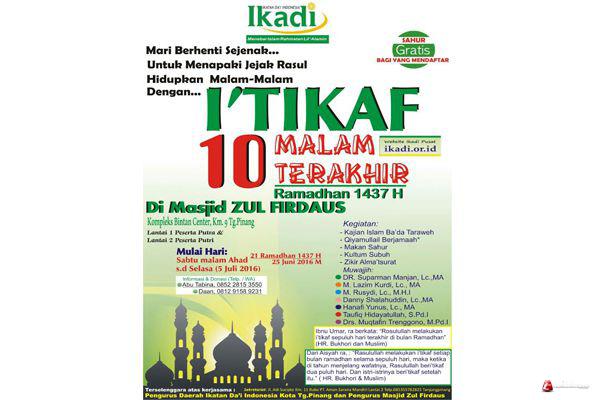 Acara ini akan dilaksanakan pada hari Sabtu malam Ahad (25/6/16) atau bertepatan dengan 21 Ramadhan yang bertempat di Masjid Zul Firdaus Kompleks Bintan Center Bt. 9, Tanjungpinang.