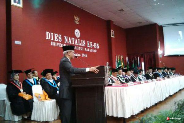 "Pertengahan tahun 2016 ini UNM telah membina 88 Prodi dari 9 fakultas dan Program Pascasarjana, 9 prodi untuk Diploma 3, 56 prodi untuk program Sarjana, 15 prodi Magister, dan 8 prodi Doktor. Umumnya semua prodi dalam proses visitasi dari BAN PT dan sudah terakreditasi B dan A," ungkapnya dalam Dies Natalis tersebut.