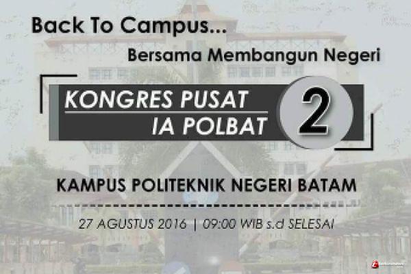 BATAM - Ikatan Alumni Politeknik Negeri Batam (IA Polbat) akan menggelar pemilihan ketua umum (ketum) baru untuk periode 2016-2019. Pemilihan tersebut akan berlangsung melalui Kongres IA Polbat ke-2 Tahun 2016 di Auditorium Politenik Negeri Batam, Sabtu (27/8). Ketua Panitia, Fendi Hidayat mengatakan kongres akan diselaraskan dengan reuni yang akan dimulai pada pukul 09.00 WIB.